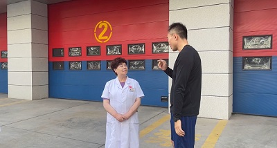 院长杨春秀与城关区消防救援大队负责接收的官兵进行了亲切愉快的交流。交流中,杨院长代表玛丽亚妇产医院对消防官兵为维护地方经济发展和社会稳定,保障人民群众生命财产安全所表现出的忠诚及付出的辛劳表示敬意和感谢。