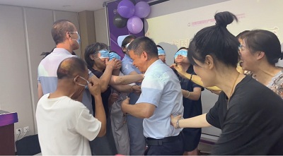 “猜猜我是谁”的趣味游戏开始,一轮十人一组,大家用口罩蒙住双眼并围成圈,再请一位同事进入圈中,大家用手触摸,猜出这位同事的名字,最先猜中的人奖励一个小奖品。这个游戏让大家玩得不亦乐乎,乐此不疲,一波一波的人抢着上台做游戏,台上台下大家笑成一团。游戏中大家不仅收获了满满的欢乐,更是加深了彼此的感情,更是聚起了团队之力,一起共赴未来之约!